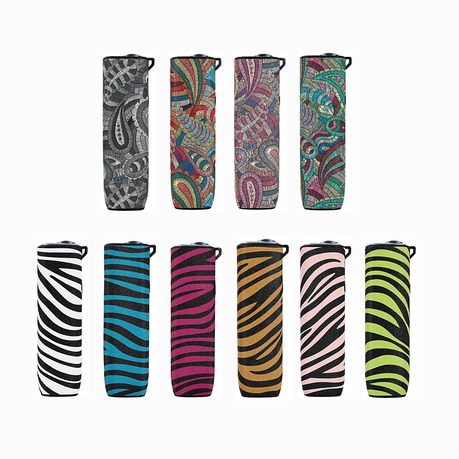 黑色, 藍色, 紅色, 綠色, 橙色, 豹紋—黃, 豹紋—灰, 木紋, 深藍, 灰色, 粉色, 白色, 腰果花-黑花, 腰果花-綠花, 腰果花-紫花, 腰果花-紅花, 斑馬紋-黑白, 斑馬紋-藍色, 斑馬紋-紫色, 斑馬紋-棕色, 斑馬紋-草綠, 斑馬紋-粉色, 蛇紋—深灰, 蛇紋—灰白, 豹紋—棕色, 豹紋—白色, 千鳥格—黑白, 斜紋—黑色, 斜紋—灰色, 斜紋—綠色, 斜紋—紫色, 斜紋—紅色